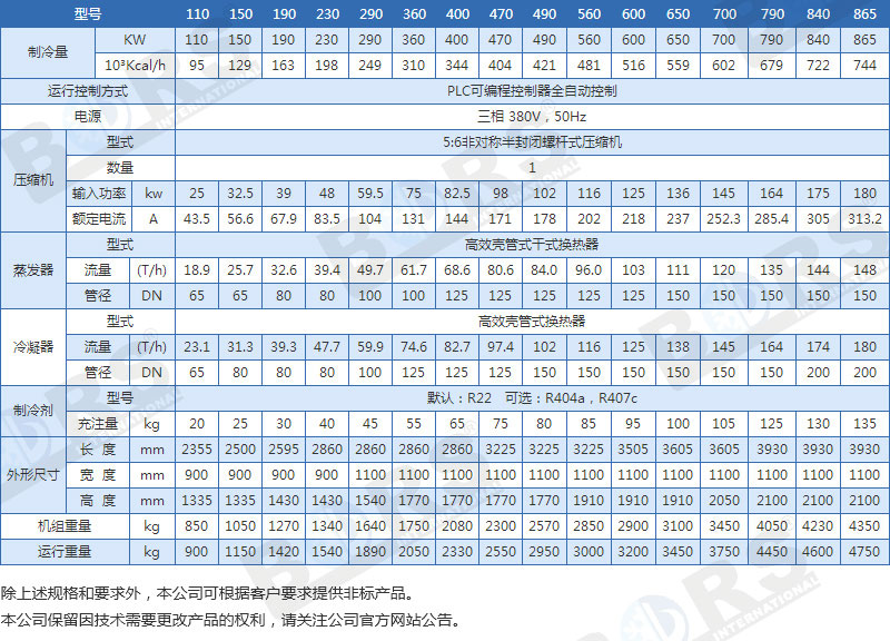 * 可選用環(huán)保型R407C或R134A制冷劑